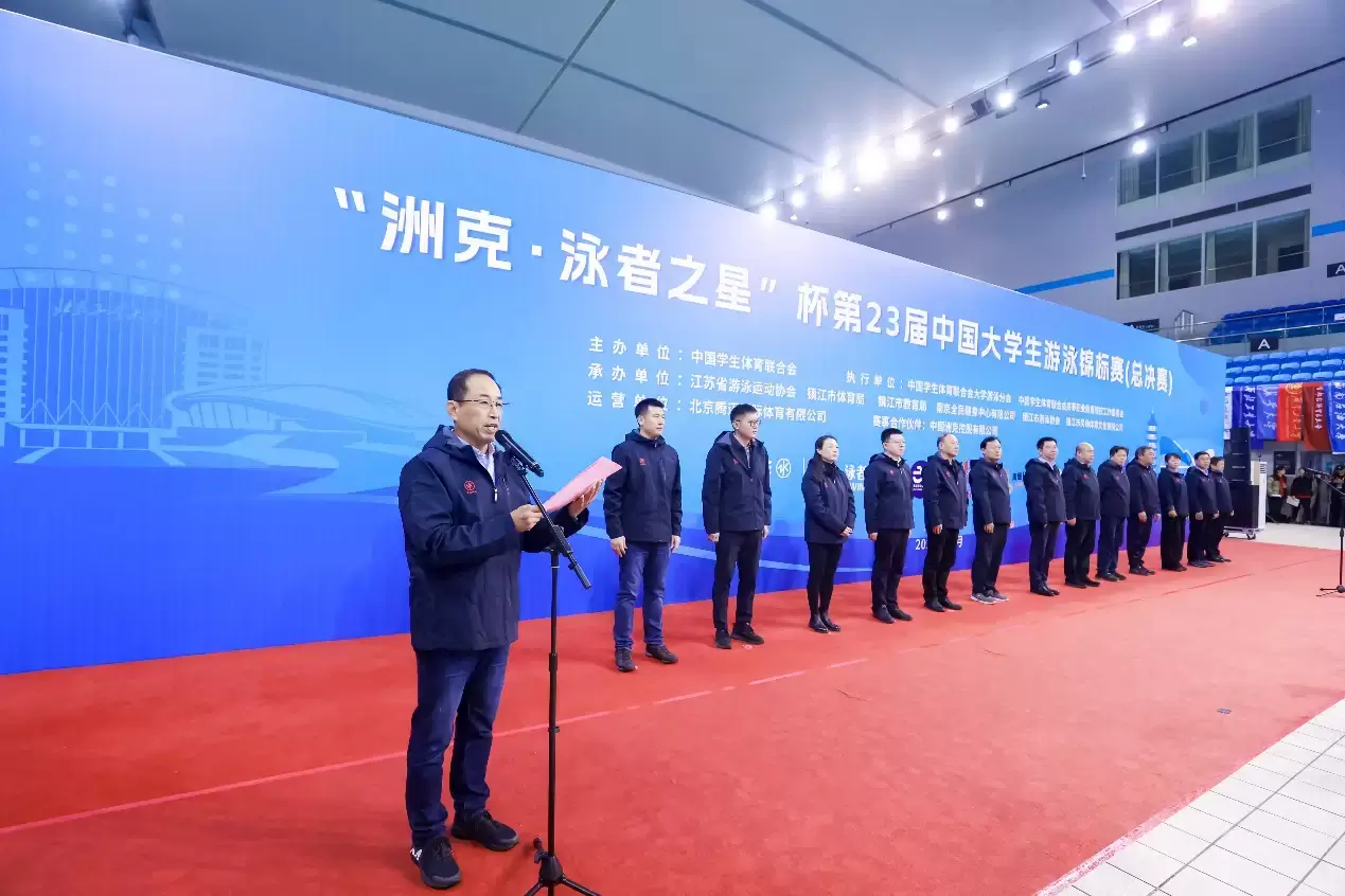 现场,镇江市人民政府副市长武鸣、中国学生体育联合会工会主席王晓毅、中国学生体育联合会大学游泳分会秘书长刘振卿、镇江市体育局局长许伟、镇江体育产业发展有限公司董事长曹学松、全民公司执行董事许晨飞等出席开幕式。