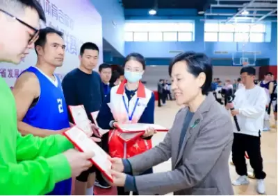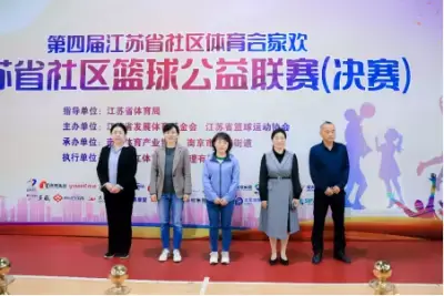 2023-03-15 8 4983月11日,由中国体育彩票资助,江苏省体育局指导,江苏省发展体育基金会和江苏省篮球运动协会主办,南京体育产业集团和南京市双闸街道承办,南京龙江体育投资管理有限公司执行的“第四届江苏省社区体育合家欢—社区篮球公益联赛(决赛)”在南京市建邺区双闸街道文化体育活动中心成功举办,江苏省体育产业指导中心副主任、江苏省发展体育基金会常务副秘书长李薇、江苏省发展体育基金会副秘书长张爱英、南京体育产业集团副总经理王璎、南京体育产业集团综合办公室主任缪晨虹、南京龙江体育投资管理有限公司董事长、总经理周培源等领导出席活动并颁奖。