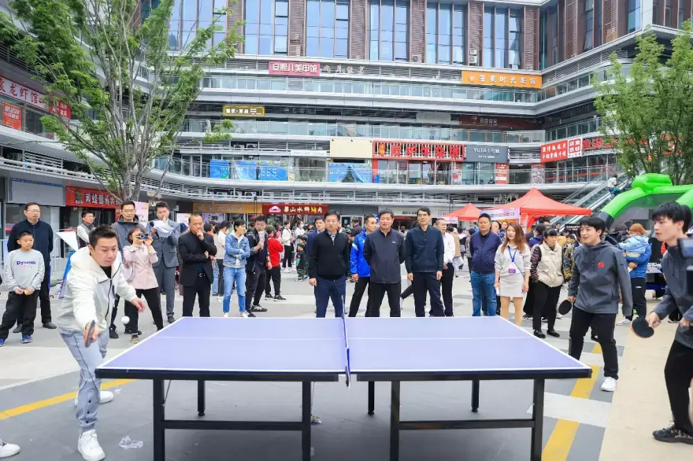 2023-04-23 8 3414月22日下午,由江苏省体育局、南京市体育局指导,江苏省发展体育基金会主办,南京体育产业集团、南京市玄武区文旅局(体育局)、南京体育学院乒羽学院、南京市玄武区孝陵卫街道协办的“江苏体彩公益社区行—2023第五届江苏省社区体育合家欢”活动在南京市玄武区龙湖紫金Mall的户外广场正式启动!江苏省体育局一级巡视员王志光,南京市体育局副局长朱华林,南京体育产业集团董事长章小奇,江苏省发展体育基金会常务副秘书长李薇以及玄武区文旅局(体育局)、玄武区孝陵卫街道等相关单位领导出席活动。