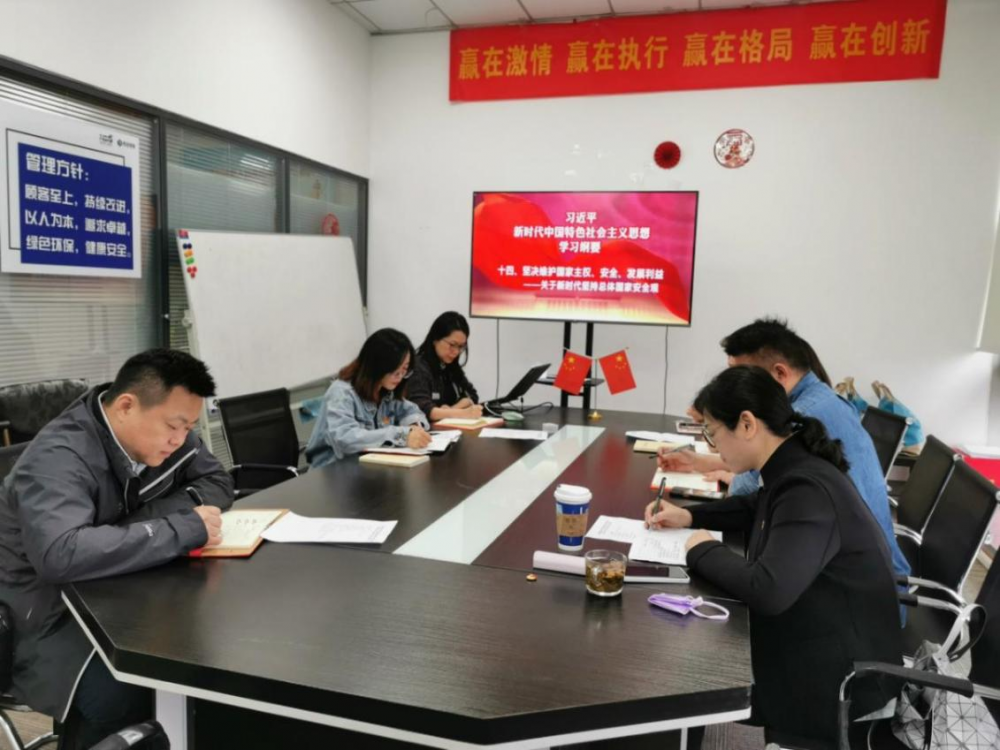 今年4月15日是我国第七个全民国家安全教育日。15日当天,支部党员已通过在线学习方式学习了《反间谍安全防范工作规定》和《江苏省反间谍安全防范工作条例》。29日会议上,支部全体党员又围绕《国家安全法》和《反间谍安全防范工作规定》进行了集中学习,并观看教育宣传片。随后,支部共同学习了党史《论中国共产党历史》节选章节——总结党的历史经验,牢固树立“四个意识”,并观看了廉政微视频《守护》。 通过学习,全体党员对国家安全法的任务、职责、公民的义务和权利等内容有了基本了解和掌握,进一步理解和认识到增强国家安全的重要意义,丰富了国家安全知识方面的储备,提升了国家安全意识。大家表示在今后的工作和生活中提高安全保密意识,共同筑起安全防线。
