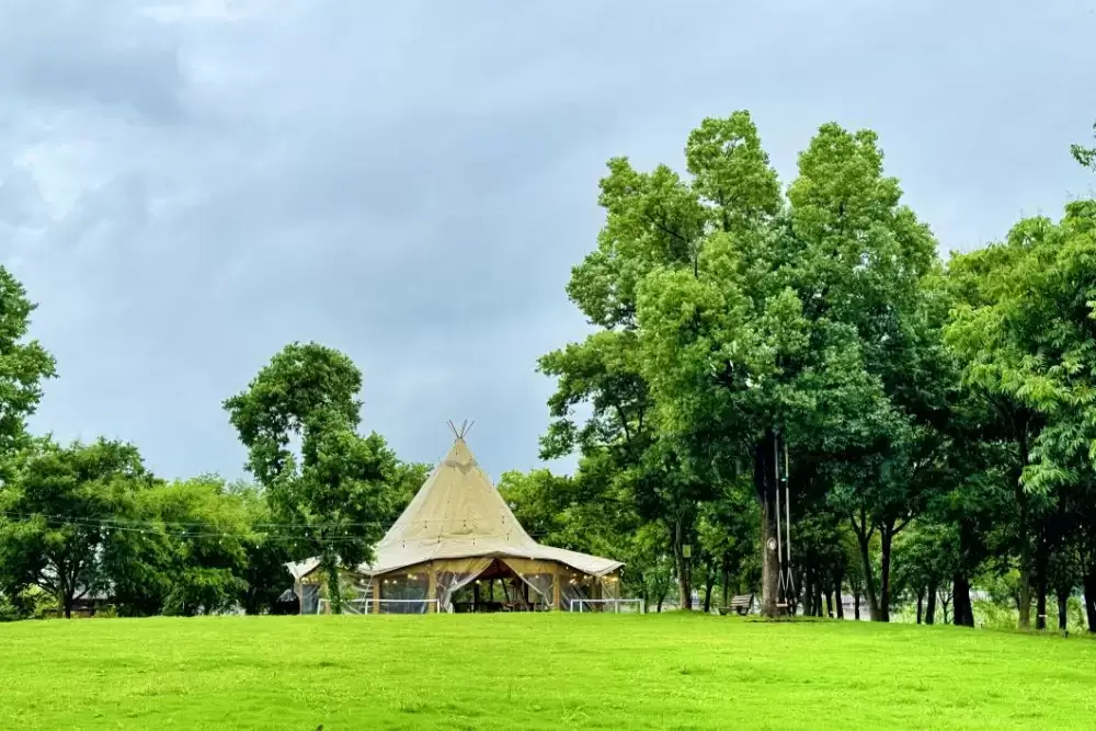 随后,一行人来到汤泉九龙湖,现场参观了“行者在野”帐篷营地。汤泉街道党工委书记、汤泉旅游度假区管办主任张华俊就近年来汤泉践行“绿水青山就是金山银山”理念,利用现有自然资源开发特色文旅项目的基本情况进行了介绍。全民公司执行董事、党支部书记许晨飞表示,全民公司作为体育集团的全资子公司,肩负着市委市政府赋予集团的“盘活公共体育资源”的工作使命,汤泉街道拥有着丰富的文旅资源,双方在文体共建、赛事举办、营地研学等板块可以开展深入合作,让党支部的“红色基因”转化为推动业务融合发展的“红色动力”,谱写好新时代“体育+文旅”的新篇章。