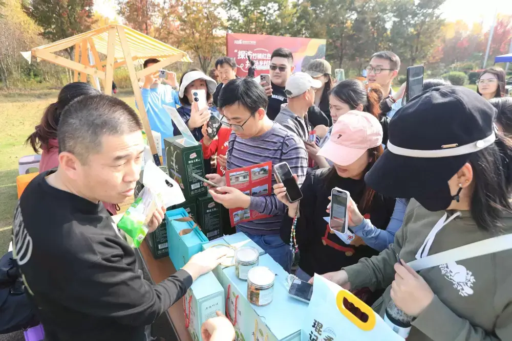 本次活动还特别设立了文旅+农产品推介展位,与徒步活动巧妙结合。竹镇镇镇长周歆瑜在现场向活动参与者及游客们介绍了竹镇特色景点、民宿和特色农产品等,来上了一场别开生面的现场“带货”。