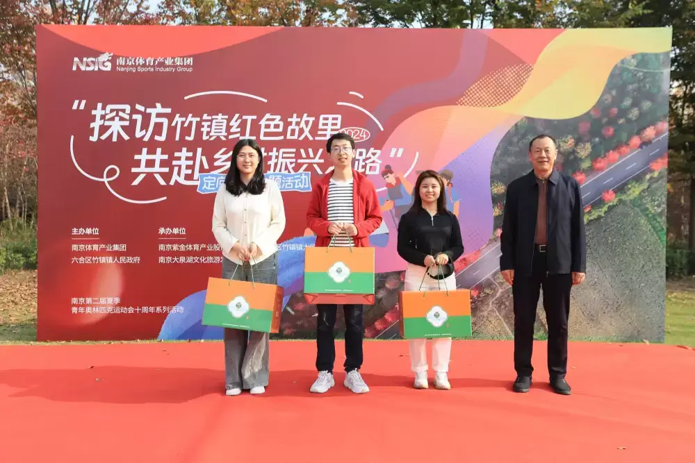 在大泉湖旁举行的完赛仪式上,体育集团党委副书记王虹燕为活动致辞。她提到,近年来,南京体育产业集团积极响应党和国家的号召,踊跃投身乡村振兴事业。 今年以来,体育集团通过“双结对、双促进”和派驻第一书记等方式与竹镇镇紧密联系,进一步明确了未来推进农体旅产业融合发展的方向。此次活动不仅是一次身心的洗礼,更是推动乡村振兴的有力举措。通过将红色文化、自然风光与农业产业相结合,让大家更加深入地了解竹镇镇的历史文化和发展现状,也为多方合作开辟了新的路径。