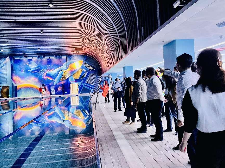 体育集团率先突破传统理念,将3D技术与游泳馆创新结合,打造全市首家以人防体育文化空间为特色的游泳馆,在满足学校教育需求的同时,扩大公共体育普惠范围,提升周边市民体育消费体验,进一步盘活公共体育资源,创新提升地下人防空间利用效能。