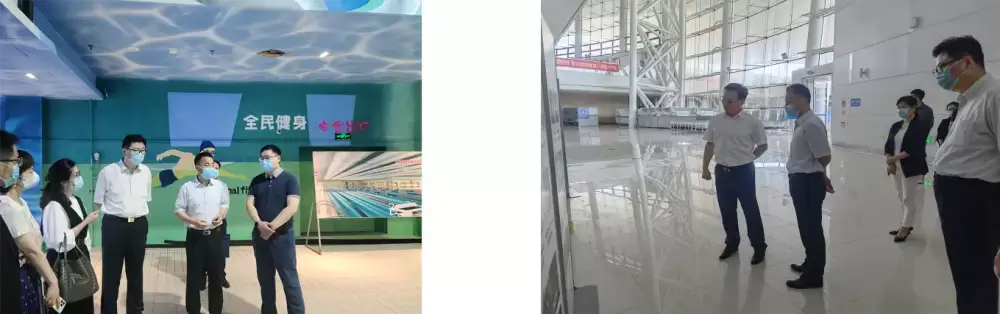 2022-06-2 13 5535月30日下午,市国资委一级调研员史捍合,群工处主要负责人一行督查体育集团党建引领下高质量统筹发展与安全工作。体育集团党委书记、董事长章小奇、党委副书记王虹燕、副总经理、党委委员王鹏,集团综合办公室、党群部、资产与安全部、全民公司、场馆公司等单位相关负责人陪同检查。