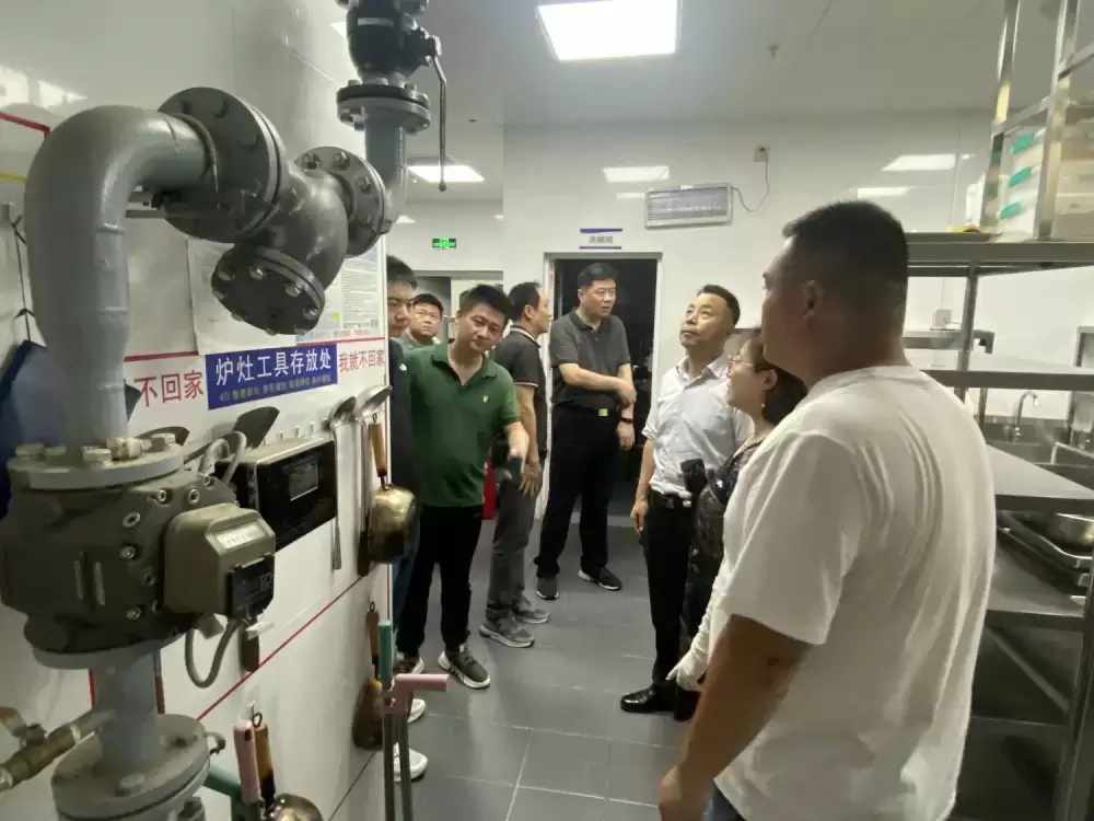 督查组一行首先深入体育双创基地和黄河大厦三家餐馆后厨,实地察看管道天然气安全检查公示牌、可燃气体报警探头、燃气紧急切断阀等设施设备,详细了解燃气风险管控、消防设施配备、烟道清洗、人员培训教育等情况。