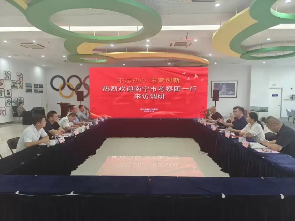 2024-08-16 14 8758月14日,南宁市体育局副局长卢创新等一行6人调研参观南京青奥体育公园并开展座谈交流,南京体育产业集团副总经理、党委委员王鹏,场馆公司与青奥产业负责人和相关单位参加本次接待。