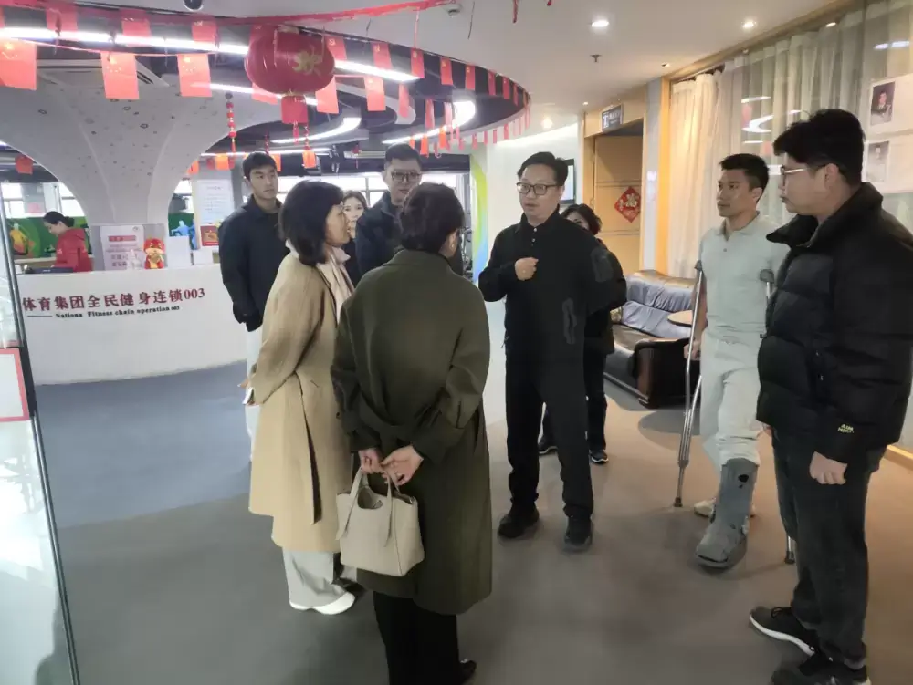 检查组一行首先来到鼓楼社区体育中心,章小奇与鼓楼区人民政府副区长伏进进、鼓楼区文化和旅游局局长李文就运动康复、校园体育设施对外开放、城市公园绿地植入体育设施等进行了现场交流,并向鼓楼区相关单位长期以来对体育集团及全民健身事业发展的关心和支持表示感谢。