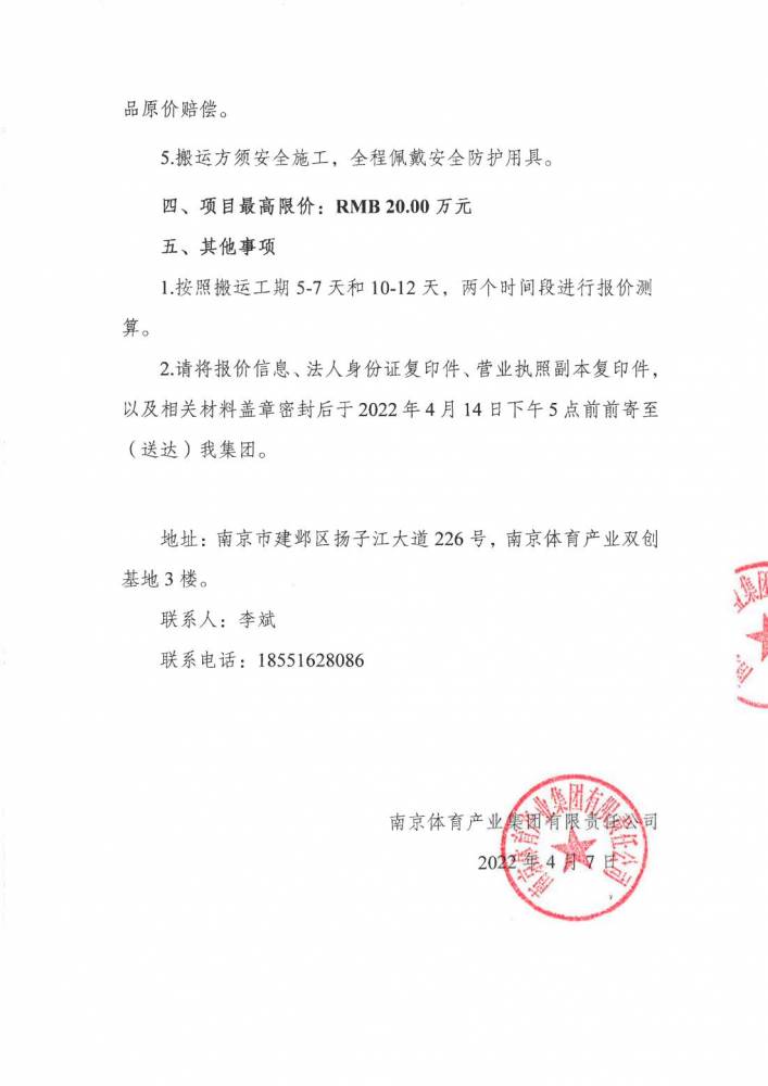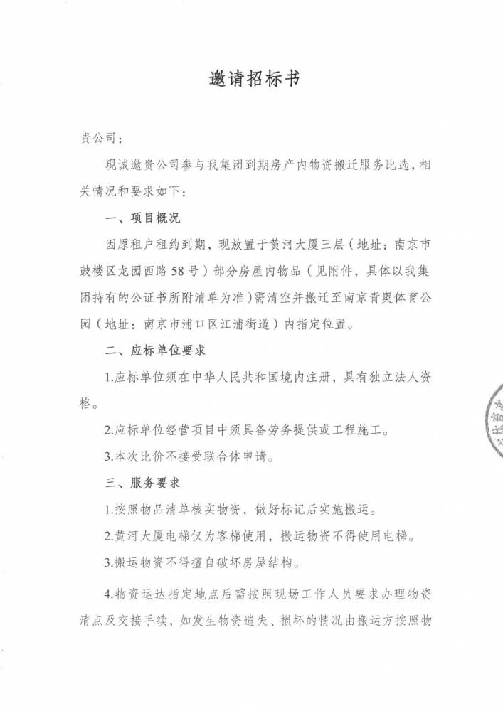 » “体育集团到期房产内物资搬迁服务项目"邀请招标书