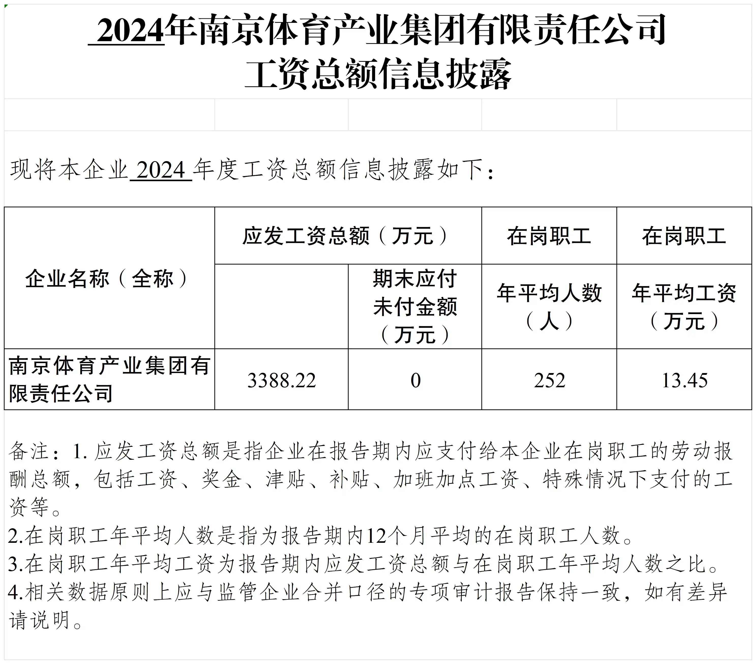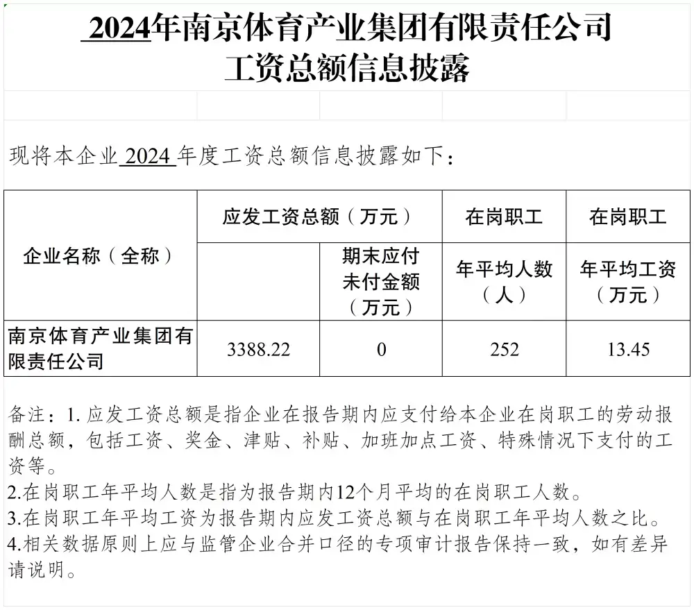 » 2024年南京体育产业集团有限责任公司 工资总额信息披露