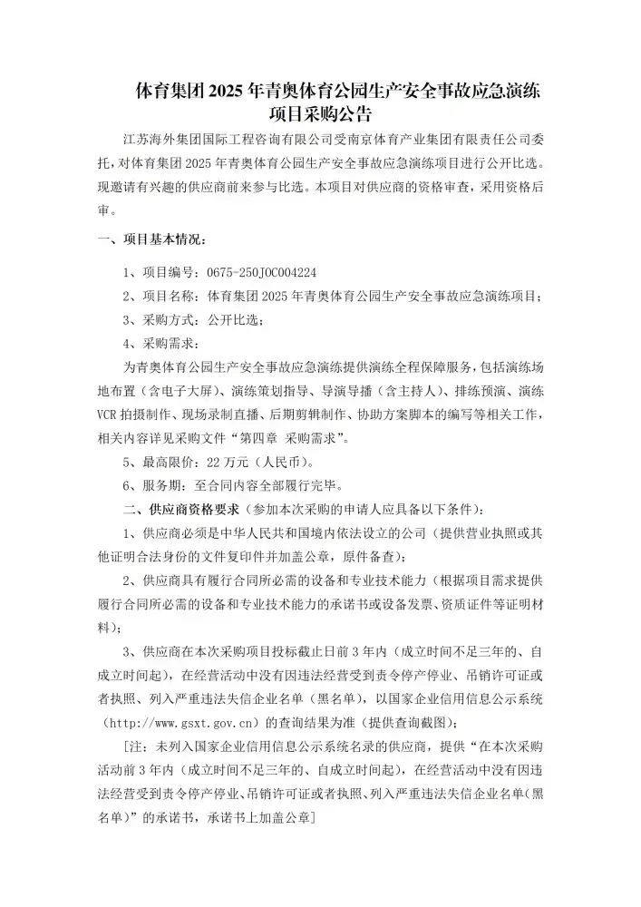 江苏海外集团国际工程咨询有限公司受南京体育产业集团有限责任公司委托,对青奥体育场馆废旧UPS蓄电池处置进行公开比选。现邀请有兴趣的供应商前来参与比选。本项目对供应商的资格审查,采用资格后审。