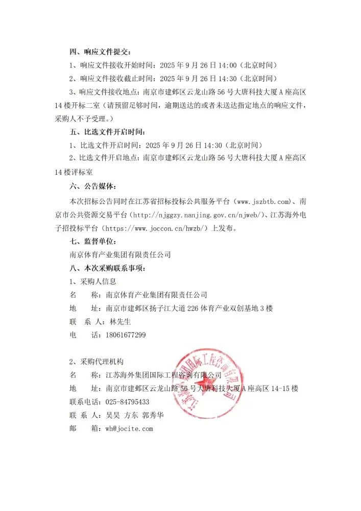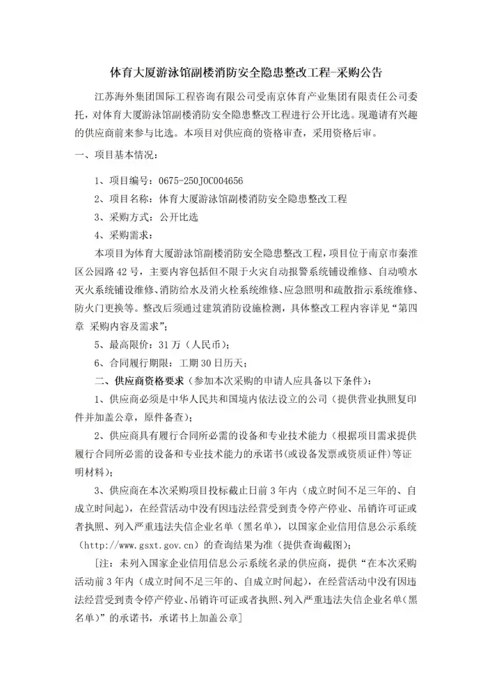 江苏海外集团国际工程咨询有限公司受南京体育产业集团有限责任公司委托,对体育集团2025年青奥体育公园生产安全事故应急演练项目进行公开比选。现邀请有兴趣的供应商前来参与比选。本项目对供应商的资格审查,采