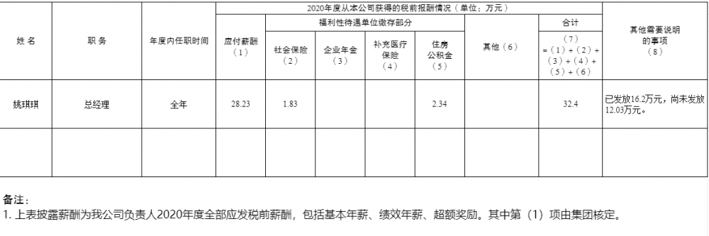 » 南京紫金体育产业股份有限公司负责人2020年度薪酬及福利性待遇情况