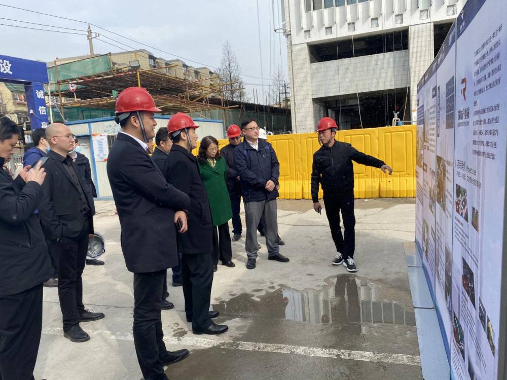 2021-03-12 8 8633月10日下午,秦淮区委书记林涛同志一行到访体育大厦项目现场调研指导,体育产业集团副总经理王鹏同志进行了现场接待,集团全资子公司青奥产业公司总经理雷俊对项目整体情况进行了汇报。秦淮区领导一行还有副区长王赵海同志,区委办、研究室、发改委、市规划资源局秦淮分局、区文旅局,街道相关负责人等主要负责同志到场陪同。