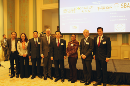 2017年11月28日上午,由美国驻华使馆和中国贸促会天津分会联合主办的“美国特许经营品牌投资推广说明会”在天津举行,南京体育产业集团董事长章小奇率集团投资部、综合办及全民公司相关人员参会。美使馆公使衔商务参赞Cynthia Griffin、中国贸促会天津分会副巡视员赵峰、美国加州丹维尔市市长Newell Arnerich、美国加州都柏林市市长David Haubert、美国硅谷国际主席Cindy Cui以及OBI集团董事长徐建、来自美国四家连锁品牌代表和中方投资人等嘉宾共同出席会议。