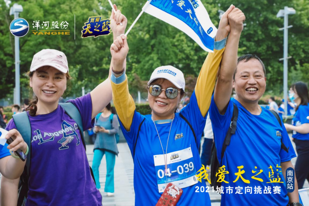 5月16日,由江苏省体育竞赛管理中心、江苏无线电和定向运动协会、江苏省酒类行业协会指导,江苏洋河酒厂股份有限公司(苏酒集团)南京市体育产业联合会主办,江苏新扬文化传媒有限公司、青奥产业南京有限公司承办的“我爱天之蓝2021城市定向挑战赛”在南京活力开跑。南京体育产业集团总经理程向阳、江苏省体育竞赛管理中心竞赛部部长张栓太、南京市体育产业联合会轮值主席曹畅、江苏省酒类行业协会酒类消费者分会秘书长邱建林、苏酒集团南京大区总经理张佑全出席活动开幕式。近1000位参赛选手身着统一服装,在建邺区万达广场汇聚成一片蓝色的海洋。![]()