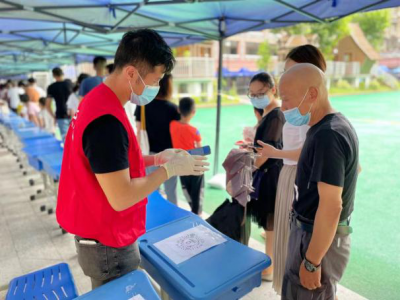 7月24日,20名党员志愿服务队成员前往江北新区沿江街道协助复兴社区工作人员做好社区居民信息排查、登记、最新政策宣贯以及核酸检测点现场布置等事宜,为南京第二轮全员核酸检测做好准备。