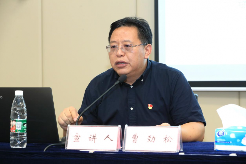 2021-09-27 5 8429月26日,体育集团学习贯彻习近平总书记“七一”重要讲话精神专题宣讲会在青奥体育公园新闻发布厅举行。市委宣讲团成员、市社科联主席、党组书记、市社科院院长曹劲松作专题宣讲。集团全体党员和入党积极分子参加宣讲。
