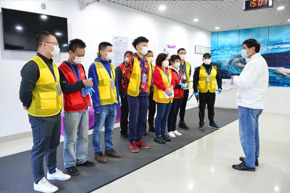 演练模拟了突发疑似新冠患者经过场馆区域时场馆从正常经营到紧急封闭及消杀的应急处置全过程,从病人临时隔离到疾控防疫医护人员带离检测,从应急响应、情况逐级上报到事后场地喷洒消毒,从在场人员信息统计,分散防护,到听从医护人员隔离检测安排,进行了全面细致、贴近实际的演练。演练结束后,校方专家点评了演练中不足部分,加强应急处置工作的全面性、安全性和有效性,促进游泳馆防控和救治工作的科学化、标准化、程序化,保护师生的身体健康,保障游泳馆工作有序开展。