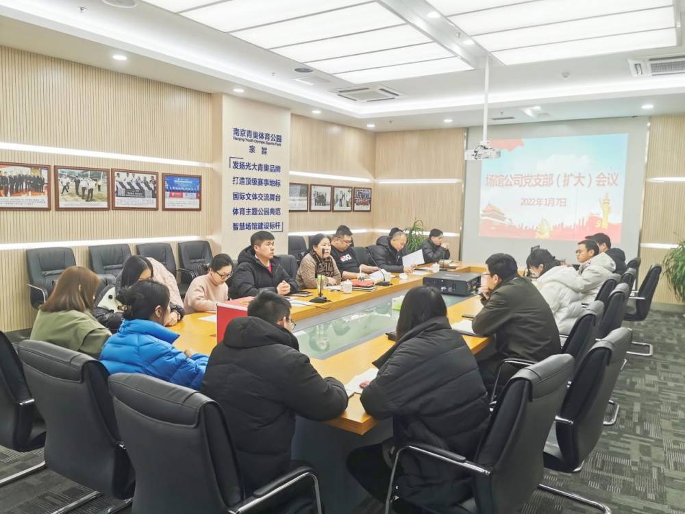 2022-01-10 2 7541月7日,场馆公司党支部(扩大)会在南京青奥体育公园中央管理平台召开,支部全体党员、公司班子成员及主管级以上人员参加本次会议。会议由公司党支部书记、董事长缪晨虹主持。