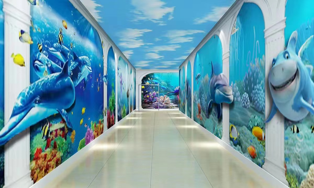 为打造南京市第一家人防文化空间为特色的游泳馆以及网红打卡地,故场馆设计理念打破了传统游泳馆的概念,以海洋3D动漫为主题,将儿童成长教育与娱乐相结合,围绕体育与文化相融合的理念,一改传统游泳馆的装修风格,跳出传统游泳馆使用白墙的桎梏,采用了3D动漫墙绘与灯光设计,并以3D动画技术打造深海环境,结合当前较火的儿童主题绘画墙,构建了新型的海底世界乐园,用现代科技与娱乐项目结合,专为儿童打造一个缤纷多彩的游玩世界,带给您和您的孩子前所未有的听觉、视觉盛宴!其中3D长廊、荧光网红墙(大蓝鲸)等融入互动技术,设计地面互动、墙面互动等娱乐环节,通过视觉、听觉打造光影梦幻世界,营造全方位海底世界动态美感、奇幻感,促使教育娱乐结合,让您和您的孩子整个体验过程丰富多彩,身心愉悦。