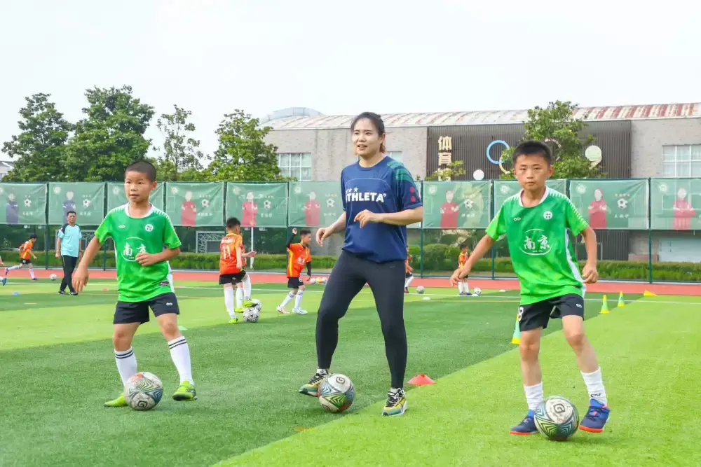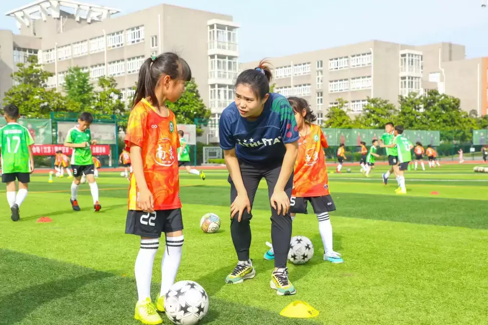 和中国女排一样,坚韧勇毅的中国女足同样是永不言败、敢于拼搏的代表。本次活动邀请到的进校园冠军是女足原国家队队员、国际级运动健将王丽思。王丽思为现场的青少年学生发表寄语,分享了自己理解中的“女足精神”,鼓励广大青少年能够发扬“女足精神”,做一个德智体美劳全面发展的优秀学生,未来成为祖国建设中的栋梁之材。欢迎仪式后,领导及嘉宾听取了学校足球运动项目开展汇报,并实地观摩了学校足球队训练情况,王丽思与小运动员、指导教练进行了现场交流,并对孩子们的训练给予了专业的技术指导。