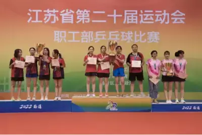 2022-08-18 2 383近日,体育集团高灵飞参加的南京市职工代表队在江苏省第二十届运动会职工部乒乓球比赛上获得青年组女子团体银牌。