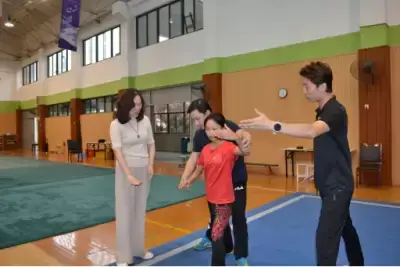 对于能将全国武术冠军邀请入校和孩子们开展交流,南京市中华中学附属小学副校长封海蓉在致谢同时也介绍了学校的武术特色项目开展情况。据悉,中华附小开展武术运动已有十余年历史,不仅围绕武术编写了校本课程,在校内建设了武馆、组织武术社团,还聘请了南京市体校的武术教练对全校二、三、四、五年级的学生每周开课,就连不少校园设施都有和武术相关的文化。比如一楼的银杏树林名曰功夫林,二楼连廊有主题为“武韵中华”的历史展,更有武术动感游戏机,让学生随时可以和虚拟的武林高手过招。