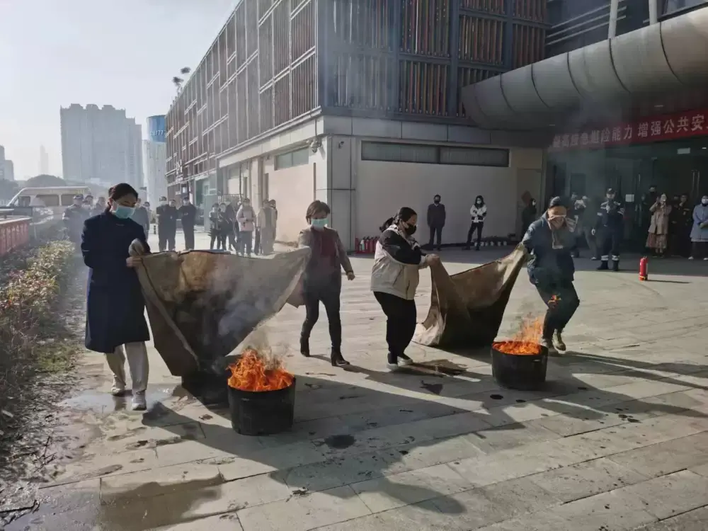 培训结束,在一阵阵急促的消防警报声中,集团相关部门立即组织员工进行疏散逃生,员工用事先准备的口罩、湿毛巾等物品捂住口鼻,冷静有序沿应急疏散通道迅速下楼,俯身快速穿过演练“浓烟”,并跨越火线,撤离至室外指定空旷区域。