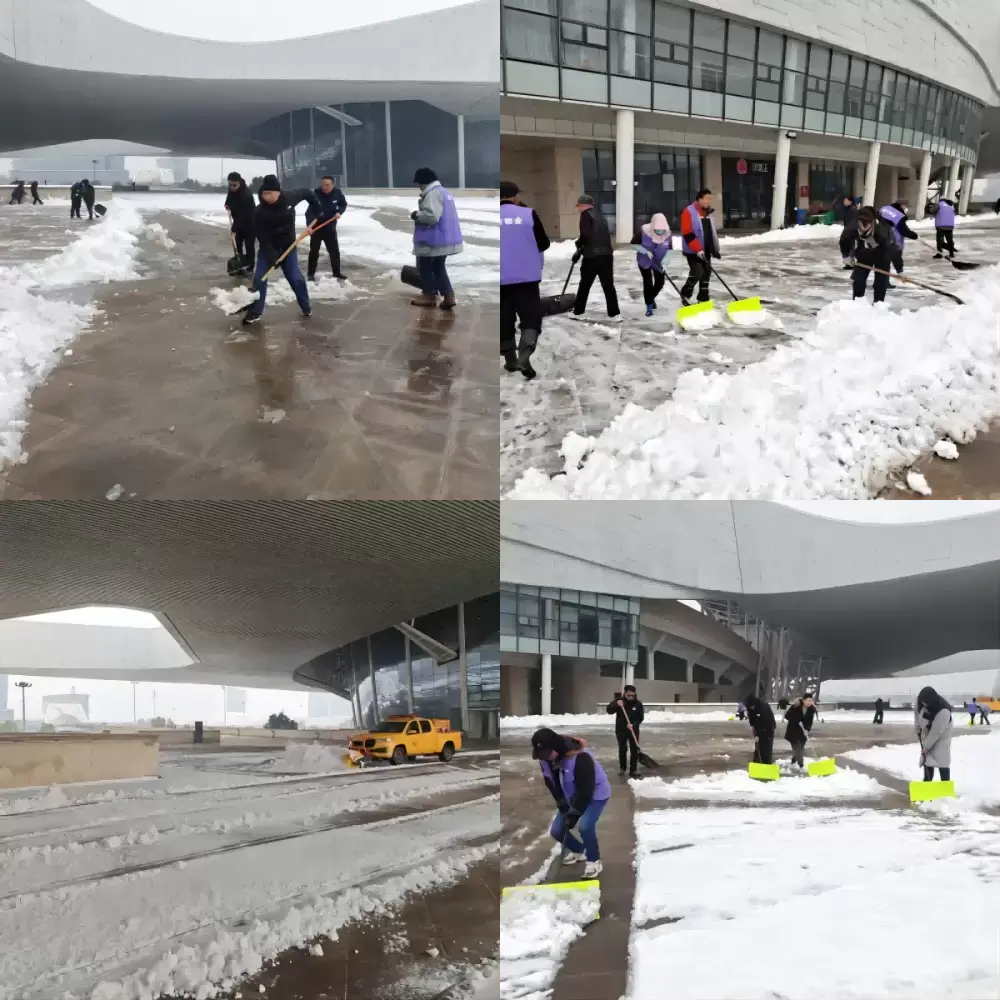 演出前夕,南京迎来了降雪天气,南京市气象台连续发布道路结冰黄色预警信号和暴雪蓝色预警信号。南京青奥体育公园以雪为令,迅速集结全体员工投身扫雪除冰工作。工作人员们使用除雪车、铁锹、除雪铲等工具,仔细清理道路上的积雪,为观众提供了一个安全便捷的观演环境。
