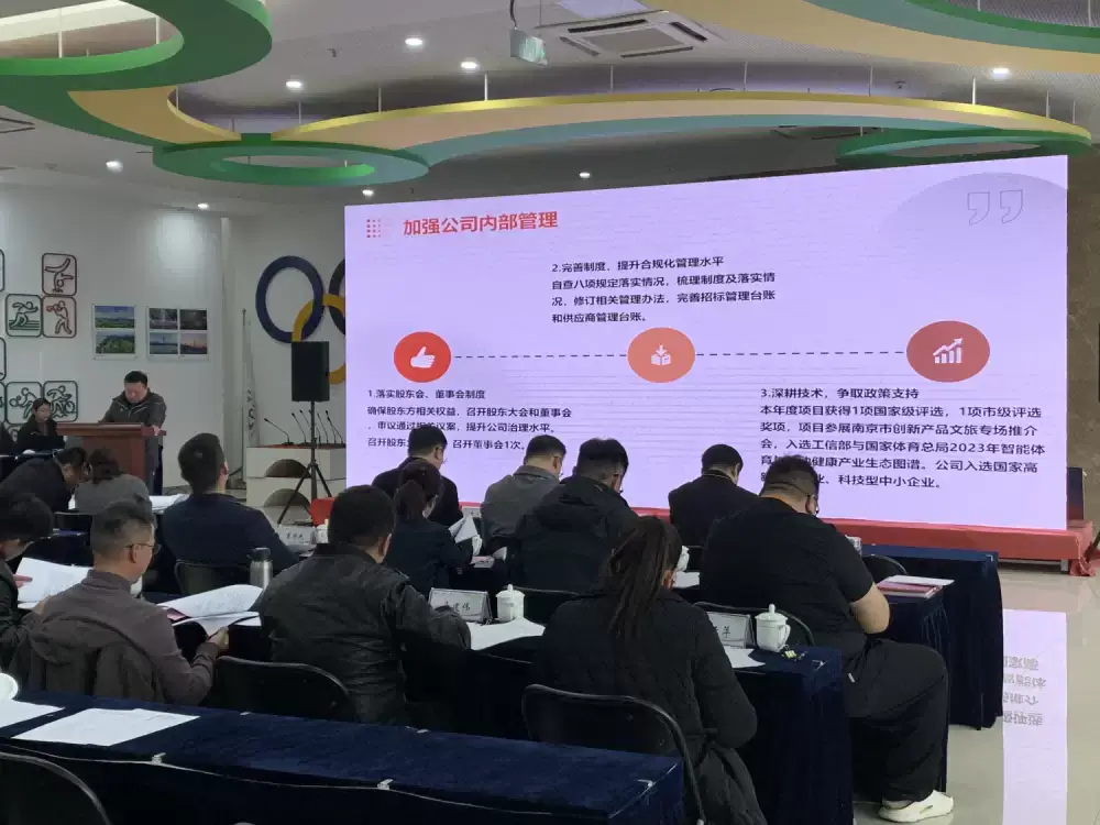 集团党委书记、董事长章小奇结合各子企业经营情况,对各委派董事的现场述职逐一进行点评。全民公司2023年在连锁场馆运营数字化、标准化等方面做出了扎实的成绩,并成功举办2023年“绿水青山”中国休闲运动挑战赛(南京汤山站)系列活动;青奥产业在青奥五色馆开发运营和大型赛事活动执行上惊喜不断,成功执行了第五届南京国际赛艇大师赛,首次联合执行南京马拉松等大型国内赛事,并成功承办了第四届世界体育名城发展峰会;紫金股份“基于场馆码的公共体育运动空间数据服务平台”项目获评国家工信部、国家体育总局100个智能体育典型案例之一;场馆公司全年引进大型文化演出15场,体育馆冠名及包厢出租等无形资产开发业务也取得了重大突破性成绩;体康科贷持续优化贷款投向,聚焦科技、健康类优质客户,并在不良贷款清收方面取得了显著成效,在全省444家小额贷款公司中获评行业监管评级最高等级A级;中体宁创积极维护集团股东权益,及时有效盘活股权资产,且在过程中较好地维护了和央企股东的合作关系,为后续进一步合作发展留足空间。龙江投资在青少年培训、赛事活动等业务上的创新实干成效显著,国防体育项目市场竞争力和影响力不断增强。