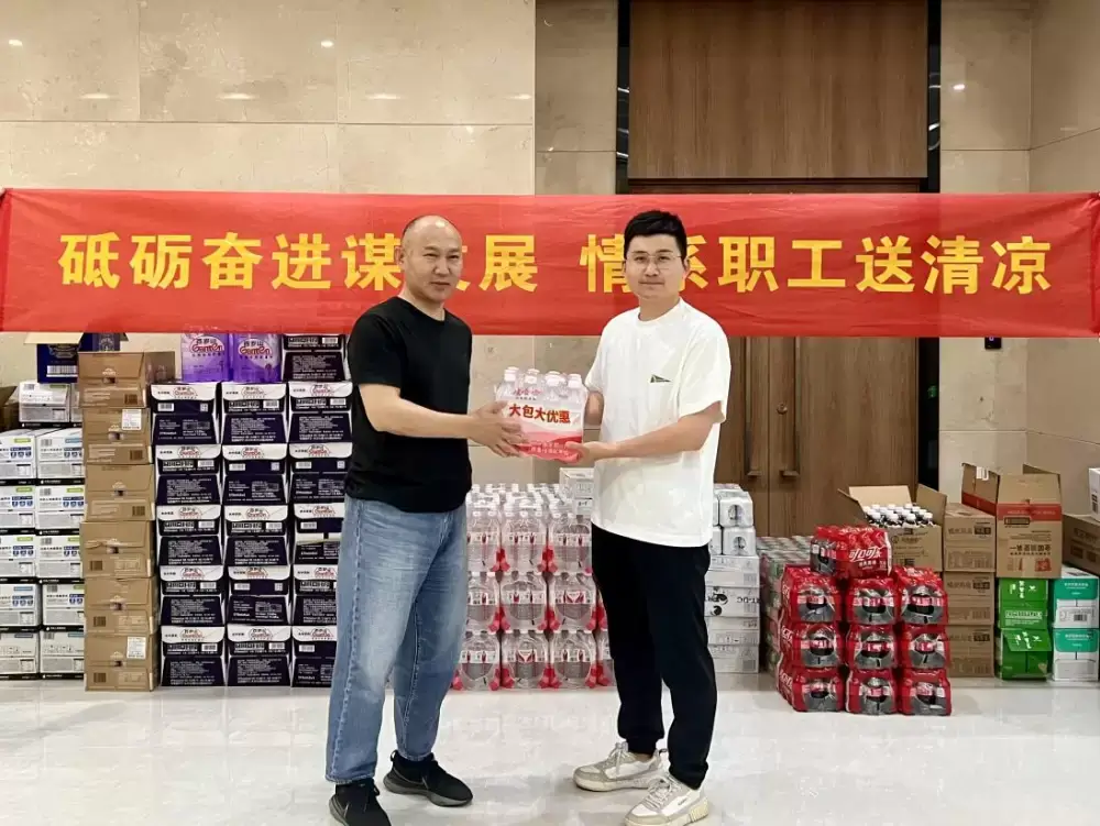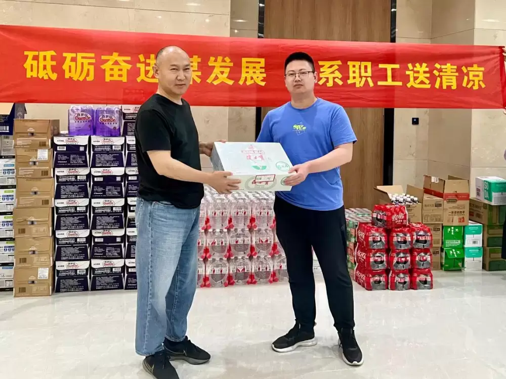 为做好高温天气的防暑降温工作,保障员工健康安全度夏,切实推进重点工作任务,8月1日,南京体育产业集团副总经理、党委委员曹志坚一行带着防暑降温慰问品,来到体育大厦项目部,慰问在高温下坚守工作岗位的员工。