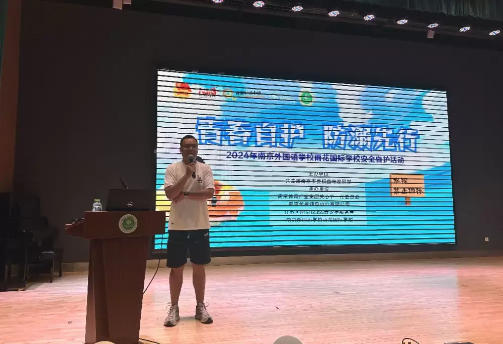 2024-06-27 3 005随着夏季的来临,防溺水教育成为学校和家长关注的焦点。为增强家长的安全意识,提高学生在野外水域环境中的自我保护能力,6月20日下午,南京体育产业集团全民健身中心(以下简称“全民公司”)走进南京外国语学校雨花国际学校开展“青春自护 防溺先行”主题的安全自护家长公益宣教活动。