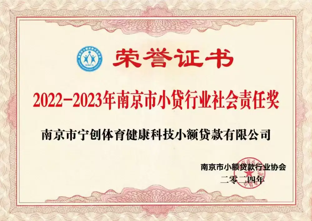 体康科贷荣获“2022-2023年南京市小贷行业社会责任奖”