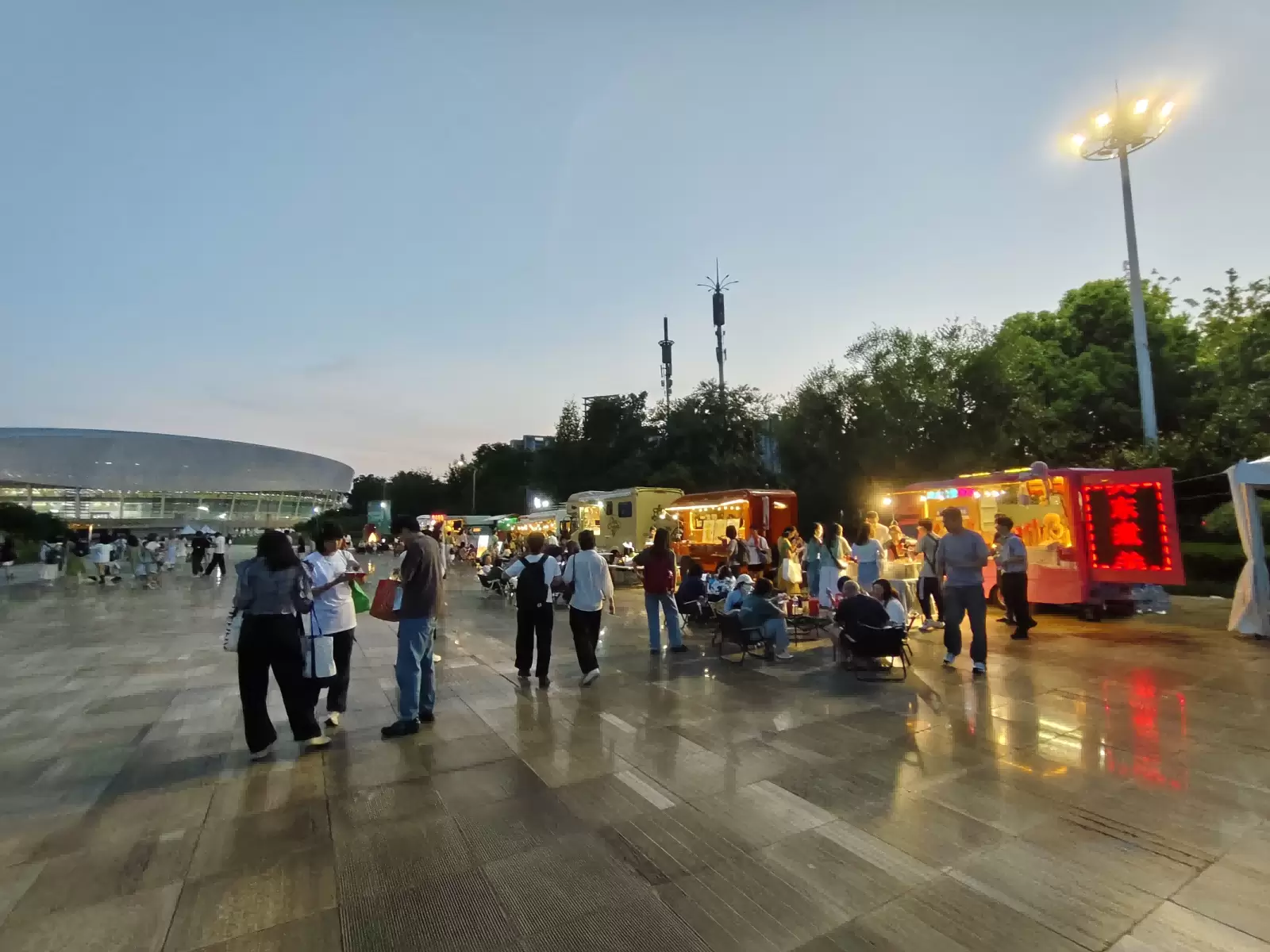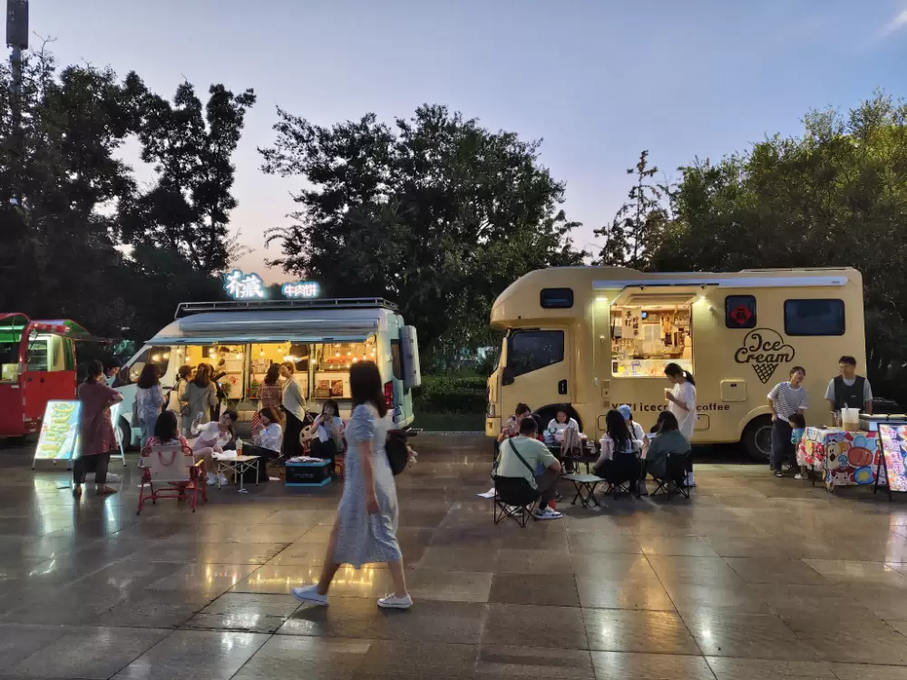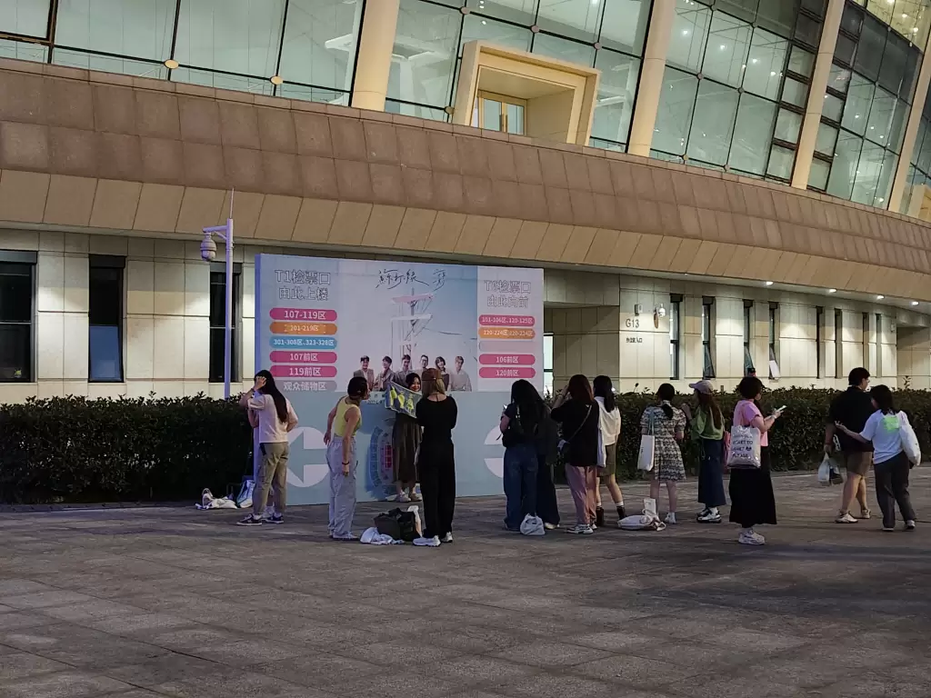 夜幕降临,华灯初上。餐车区人头攒动,粉丝们享受着开演前难得的相聚时光,各式美食的香气与欢声笑语交织在一起,为这场音乐盛宴增添了别样的色彩。不远处,苏打绿的海报前早已排起了长队,粉丝们争相与自己喜爱的乐队合影,留下这难忘的瞬间。