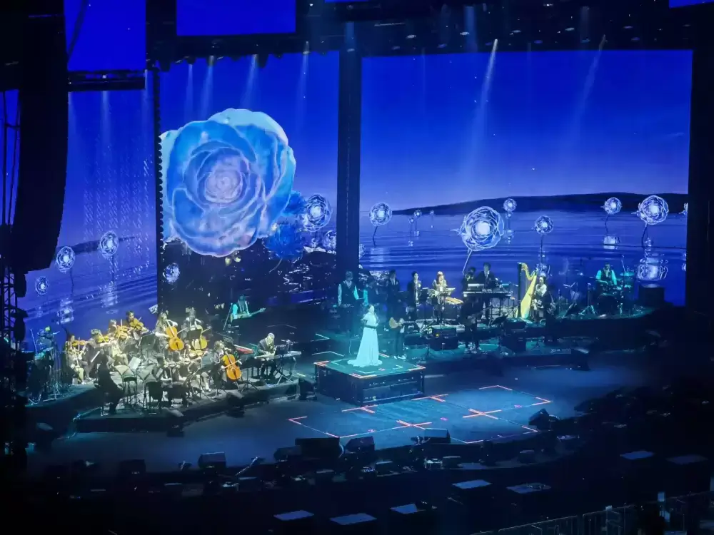 青奥体育公园梦之蓝体育馆演出现场,谭晶带来空灵唯美的《在那东山顶上》、满怀家国情怀的《龙文》等经典作品,也演绎了多首她参与音乐综艺中时火爆“出圈”的《九儿》《苍狼大地》等热曲。许多观众收藏夹中获封“神级Live”的场面重现,让观众领略到谭晶的演唱实力与鲜活的艺术魅力。她以歌声为纽带,将过去的经典与未来的梦想紧密相连,将诠释着一位艺术歌唱家的初心和使命。