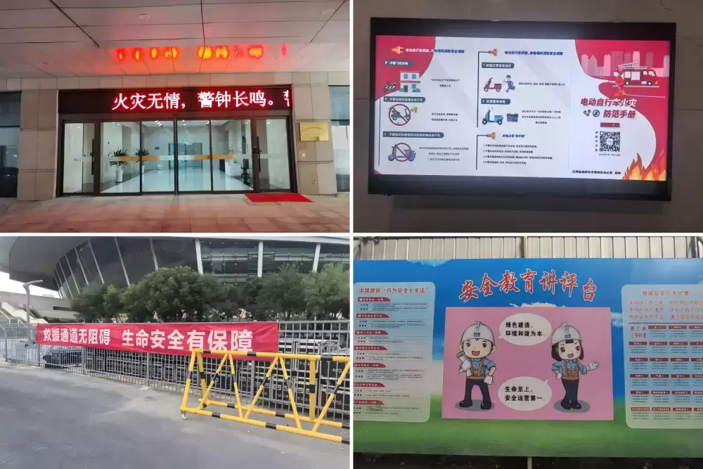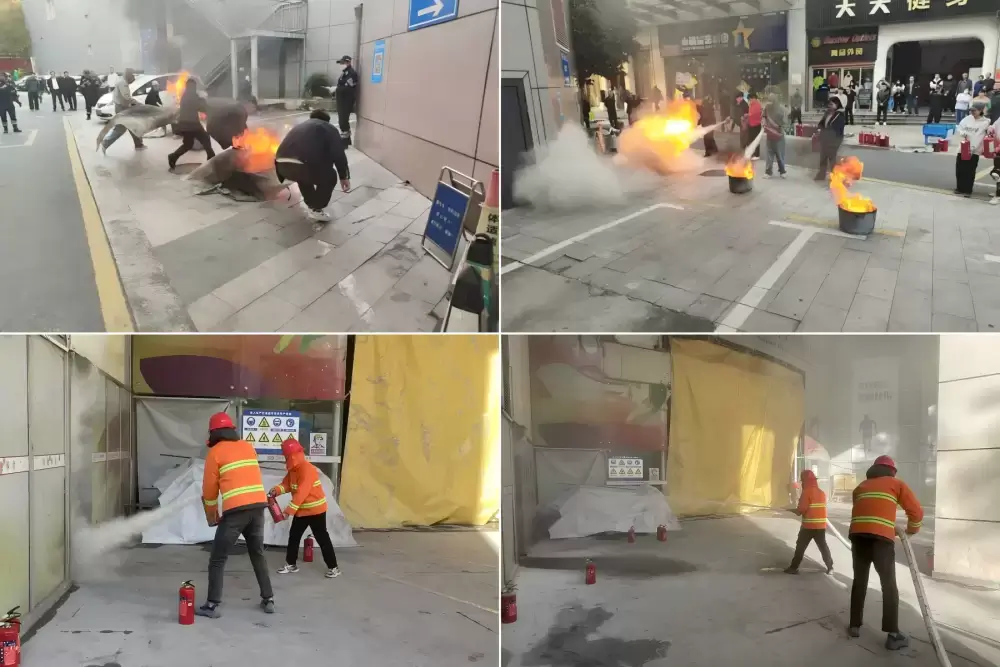 在黄河大厦、青奥城市客厅项目现场等地开展消防应急演练活动。在逃生疏散环节,参演人员迅速用湿毛巾捂住口鼻、弯腰前进,沿着标有“安全出口”通道有序下楼,并抵达集结点集合。在灭火实操环节,教官现场指导灭火毯、灭火器的正确使用方法和消火栓的操作流程,参演人员在专业指导下依次开展实战操作,迅速控制火情。通过实战演练,增强公众应对突发事件的避险能力。