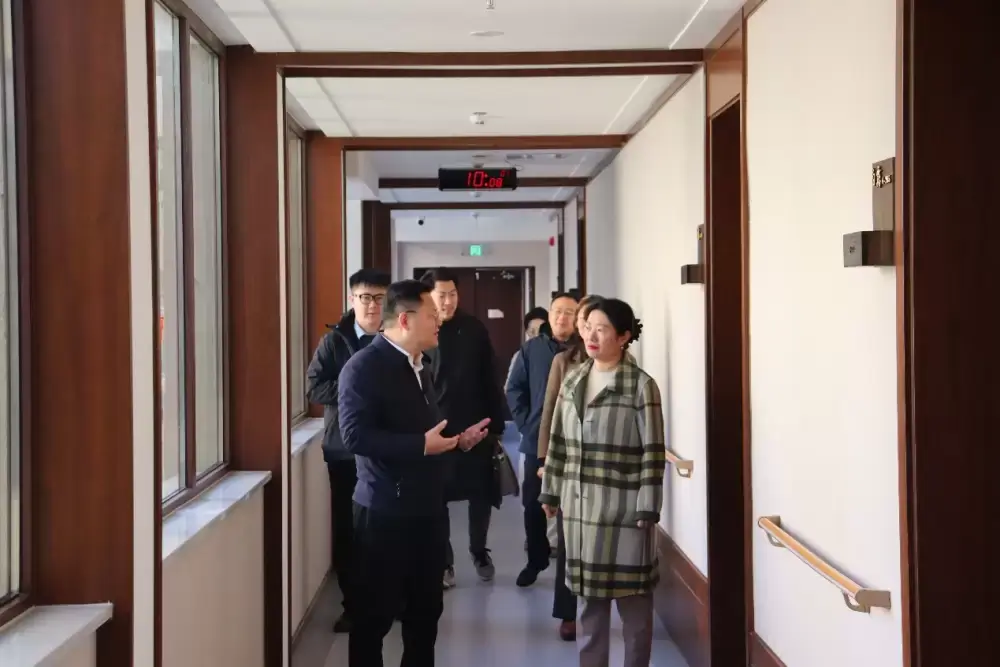 王璎一行首先实地考察悦华安养江宁中心(秣陵安养院),了解项目改造和运营入住情况,并参观了悦华安养的适老化设备和智慧养老系统。
