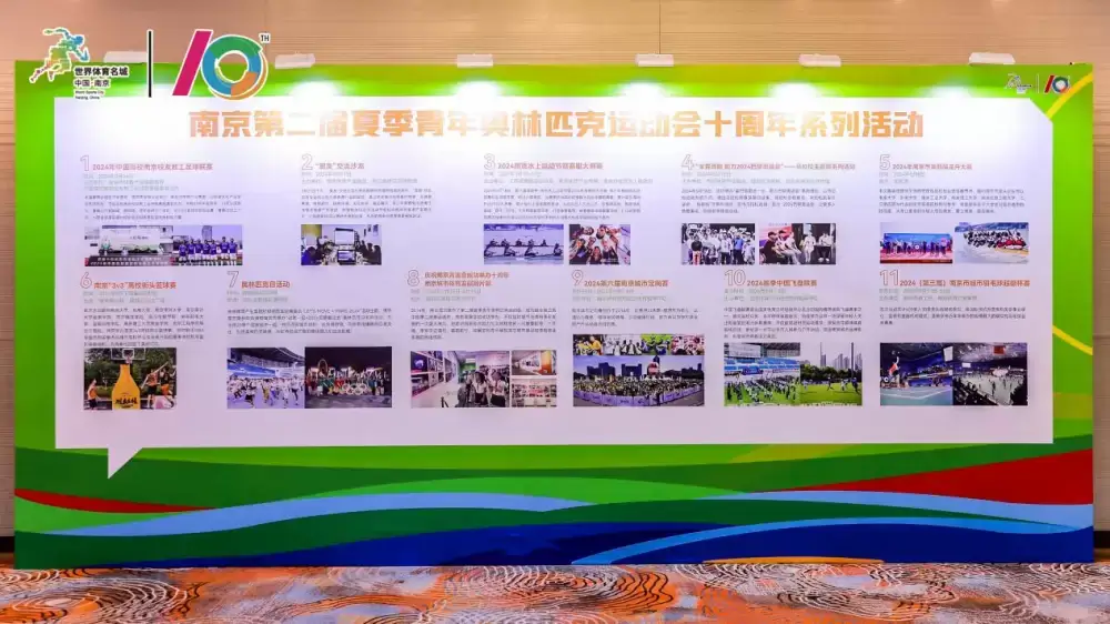 今年恰逢2014南京青奥会举办十周年,为庆祝南京青奥会成功举办十周年,充分展现南京城市建设和体育事业发展的辉煌成就,今年6月南京体育产业集团开展了“青奥十周年系列活动——青奥十年记忆影像展”活动。为更好的丰富展呈内容,以展示青奥风采、传承青奥文化,筹备期向社会各界征集相关图片、视频和实物,并邀请当年亲历南京青奥会的组委会成员、志愿者分享自己与青奥会的故事。展览现场通过一系列精心挑选的图片、视频和实物,生动再现了南京青奥会的筹备过程、赛事精彩瞬间、文化交流活动等重要内容,回顾和展示体育助力城市空间拓展、城市影响力提升、城市经济发展的成果,以及十年来南京城市体育事业在政策引导、设施建设、赛事举办、人才培养等方面的成就和亮点。