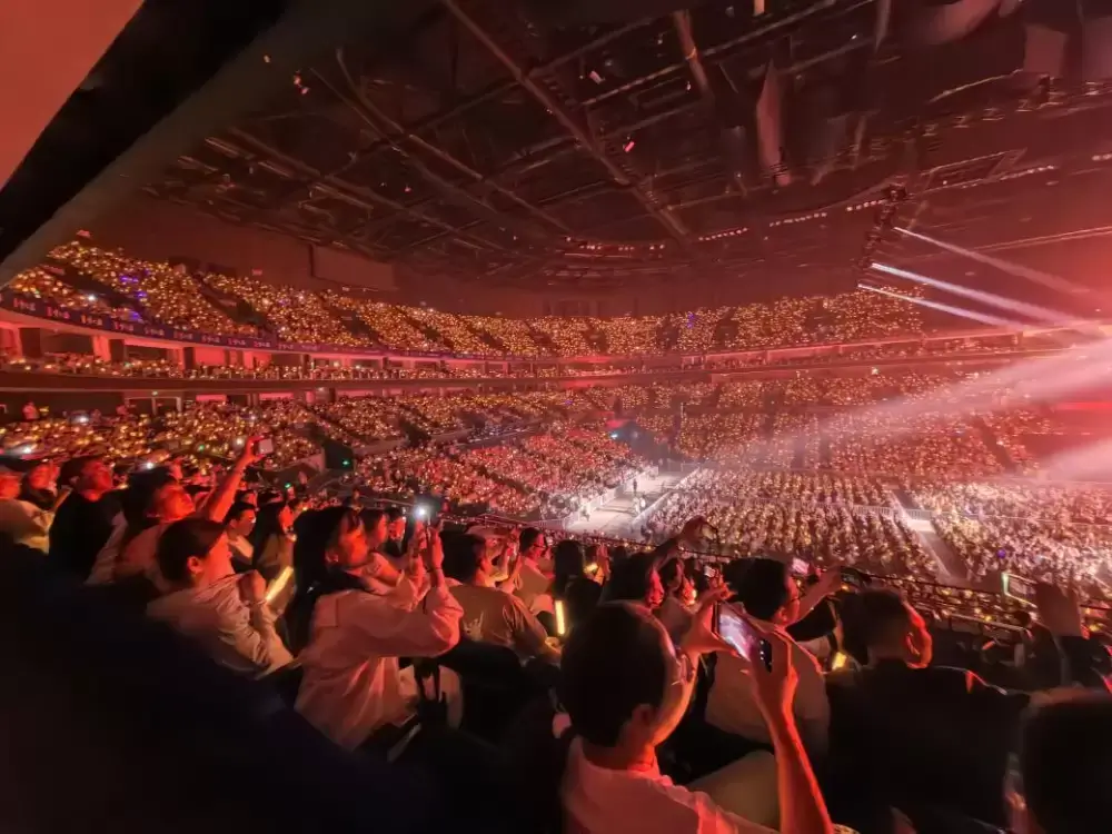 五场演出化身五封音乐情书:JS❤U的炽热、SUP↑的昂扬、BEST的经典、NICE的温润、ICON的永恒,荧光海洋随主题变幻,勾勒出跨越四十年的音乐版图。当《她来听我的演唱会》前奏响起,万盏手机灯化作漫天星斗,映照着每张含泪带笑的面庞。六十岁的张学友,依然以教科书级唱功征服全场:深情处婉转千回,热舞时锋芒毕露,经典"一字马"环节更引发山呼海啸。那些与歌迷们互动时的可爱瞬间,恰似时光馈赠的珍珠,让传奇更添温度。