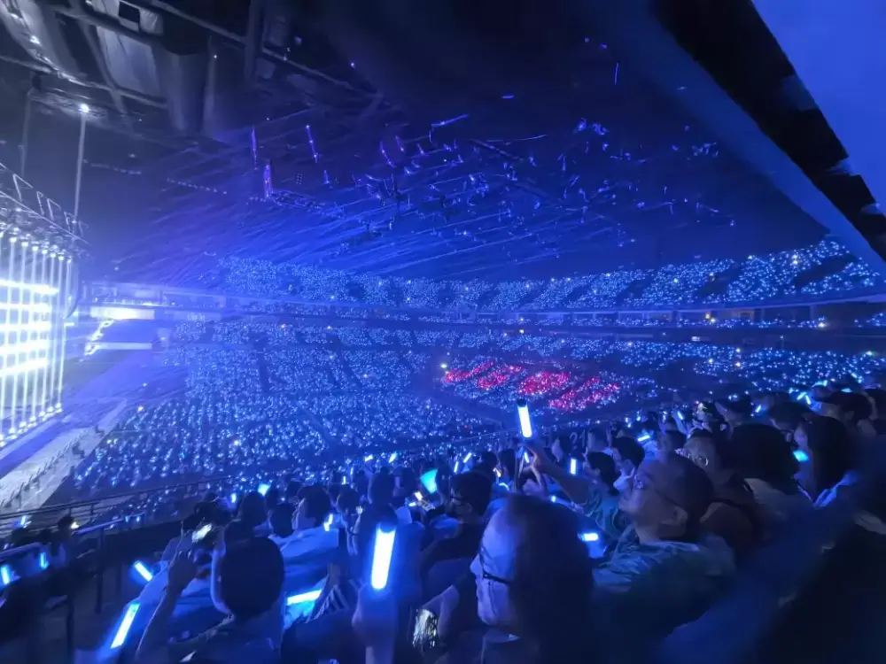 场馆服务更新成为此次演出的惊喜彩蛋。体育馆二层,乐享滋味吧焕新亮相,满载青奥品牌形象的店铺与充满活力的青奥黄带给人无限活力。月牙广场及1号门沿线的餐车市集,蒸腾的热气裹着《饿狼传说》的节奏升腾,甜香与《一路上有你》的温柔旋律交织萦绕,为演唱会增加了满满的烟火气。体育馆五层新增乐享滋味吧移动售卖点,让观众在狂欢中也能轻松充电。新增的丰巢智能储物柜,让解放双手的乐迷轻装上阵,在荧光海洋中自在挥舞。这些细节化服务让跨城奔赴的温情故事少了疲惫,多了暖意。