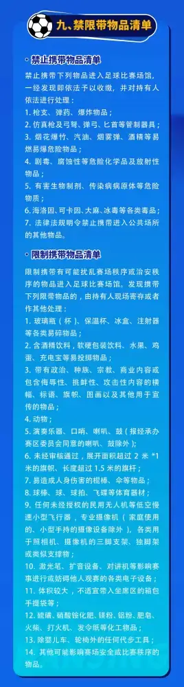 2.本次赛事实行实名制身份证件核验入场,一人一票,需同时满足人脸识别通过、门票有效、身份证信息匹配,人证票一致方可入场。儿童一律凭票入场,无身份证的儿童需由一名家长陪同,携带户口本走人工通道验证入场。