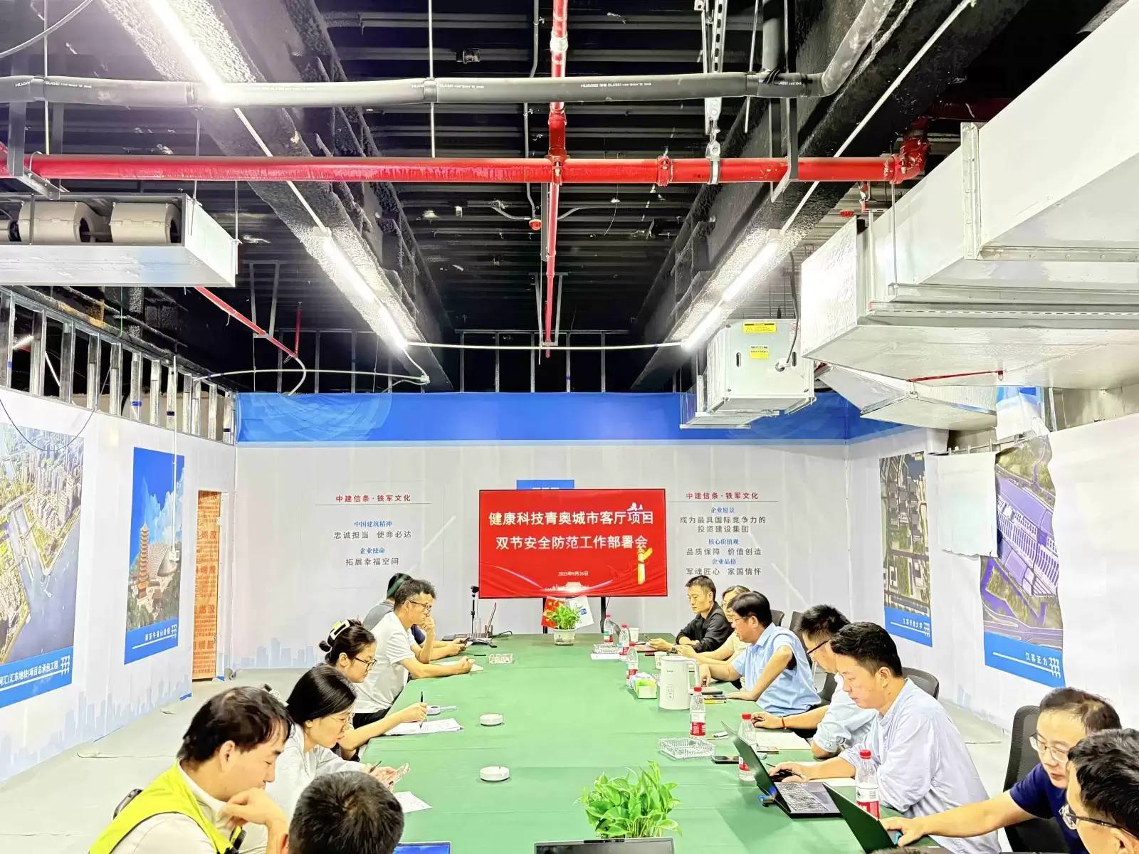 2025-09-28 470为深入贯彻落实上级关于中秋国庆假期安全工作的系列要求,切实压实假期安全防范责任,全力营造安全、稳定、有序的假日环境。9月26日,健康科技总经理林海涛在青奥城市客厅项目现场,主持召开中秋国庆期间安全防范专项部署会。会议结束后,总经理林海涛随即带队开展节前安全专项检查,项目监理单位、总包单位、设计单位等各参建方相关负责人全程参会并陪同检查。