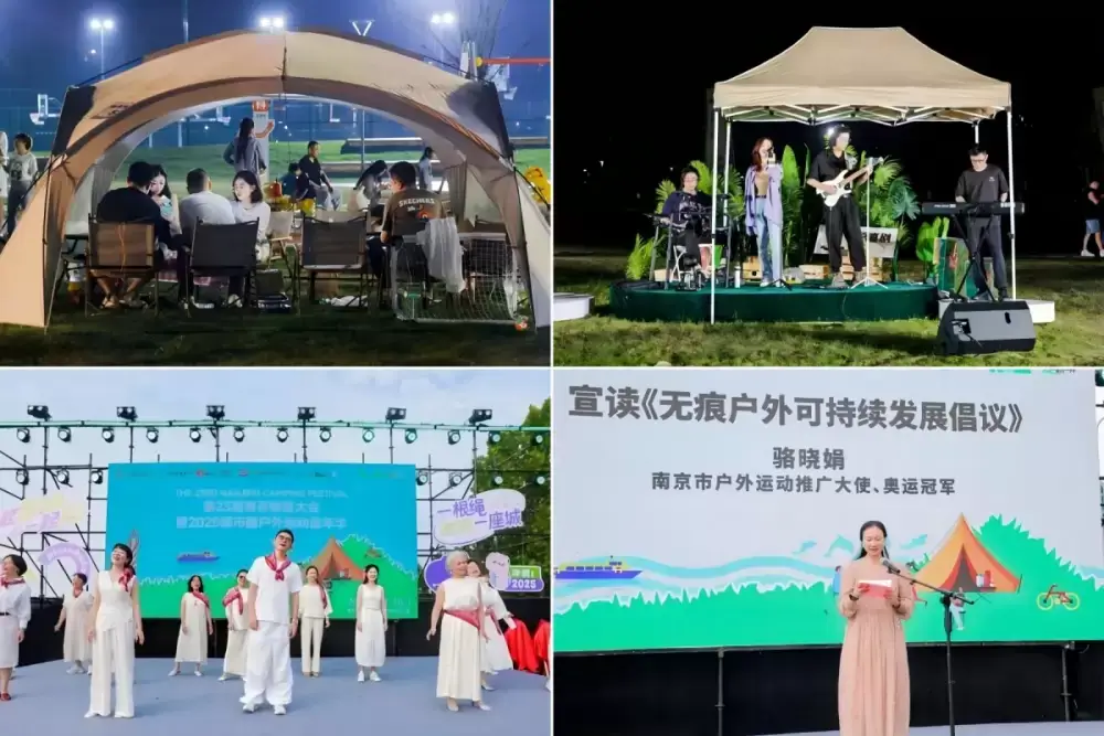 10月1日当天,南京市户外运动推广大使、奥运冠军骆晓娟宣读《无痕户外可持续发展倡议》,向全社会发出“践行环保责任、尊重自然规律、倡导文明露营”的行动号召。“无痕户外不是抽象概念,而是每次出发前的准备、