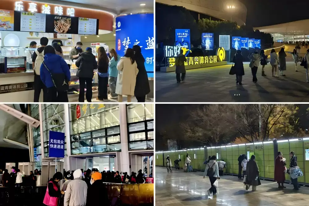 在场馆内精心设置的青奥主题打卡装置前,观众们有序排队,用镜头记录下这个特别的夜晚。数据显示,近六成观众跨省而来,为了让这一份份远道而来的热情得到最好的回应,梦之蓝青奥体育公园以细腻用心的服务落实着每个细节。优化后的入场动线大大缩短等待时间,丰富的餐饮选择为观众提供温暖补给,智能储物柜则为拖着行李的远方客人提供了贴心的便利。、