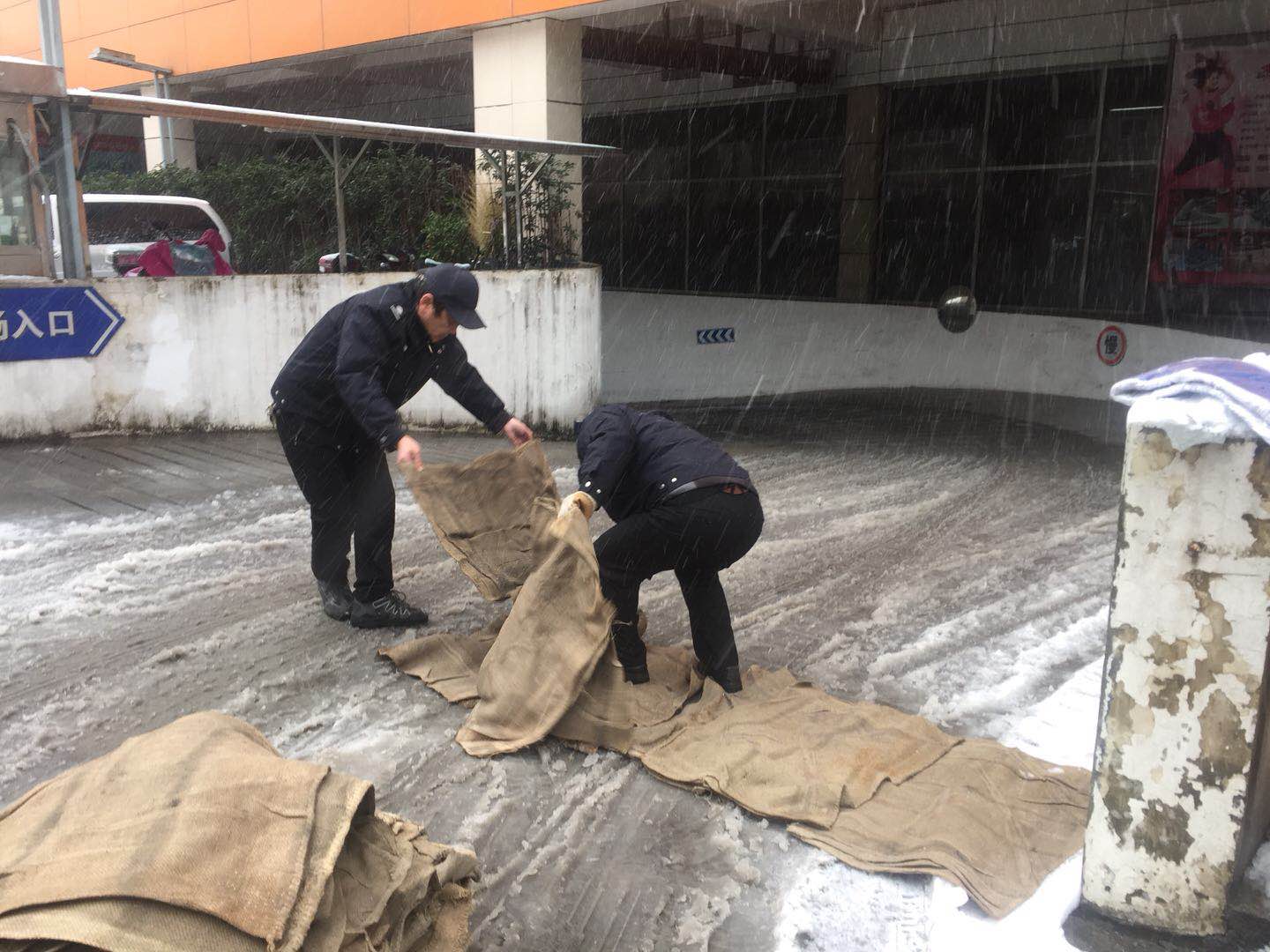 一是预警提醒。在集团内各个工作群里转发暴雪预警信息,提醒全体员工注意预防。二是雪前准备。第一时间进行工作布置,要求集团各公司、场馆准备好扫帚、铁锹、防滑垫等扫雪防冻工具,下发扫雪通知,在早高峰前将各自责任区及门口路段积雪清扫完毕。三是部署落实。迅速成立应急除雪和安全保障突击队,积极组织各下属公司做出紧急部署和安排,在各体育场馆大厅门口铺设土工布、草包、草垫等防滑垫,全力以赴保证过往市民出行安全。
