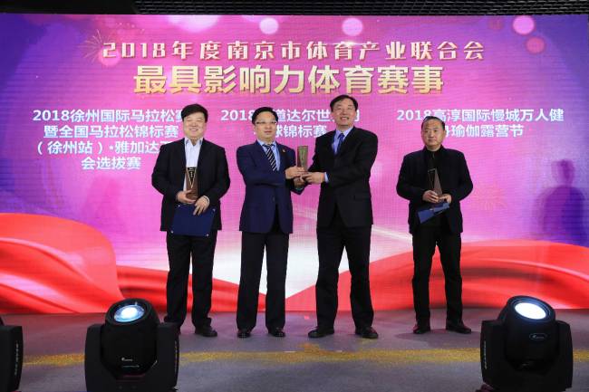 2018年度南京体育产业界“奥斯卡”隆重颁奖。南京市体育产业联合会向2018年度南京体育界具有影响力的赛事、事件、人物颁出了6项大奖。本次评选经自荐、网络初选、专家评选等流程,最终,“南京沙叶河海大学队冲乙成功”,被评为“2018年度联合会重大体育事件”,多年后,南京再次拥有了自己的职业足球队。 “2018年道达尔世界羽毛球锦标赛” 票房收入近1530万元,创造了江苏省体育赛事票房新纪录,决赛现场观众上座率达93.4%,创造了历届羽毛球世锦赛上座率以及南京体育赛事上座率的新高被评为“2018年度联合会最具影响力体育赛事”。“南京万德体育产业集团有限公司” 经过多年努力成为集文创、科技、体育、游乐、运营、制造六大业务板块于一体的多元化产业集团被评为“2018年度联合会最具成长性企业”。“未来水世界游泳馆”自2016年来满足广大人民群众的日益增长的体育、文化需求被评为“2018年度联合会最佳体育运营机构”。“南京昂派体育信息网络有限公司”深耕行业11年,为5000余家政府机关、金融、地产、运营商、外贸、外企等行业客户成功举办万余场活动被评为“2018年度联合会最佳体育服务机构”。南京善跑科技体育有限公司蔡永军先生,因过去一年对于南京体育产业发展具有重大贡献,又当选为了新一届中国奥委会委员,因此被评为“2018联合会年度人物”。