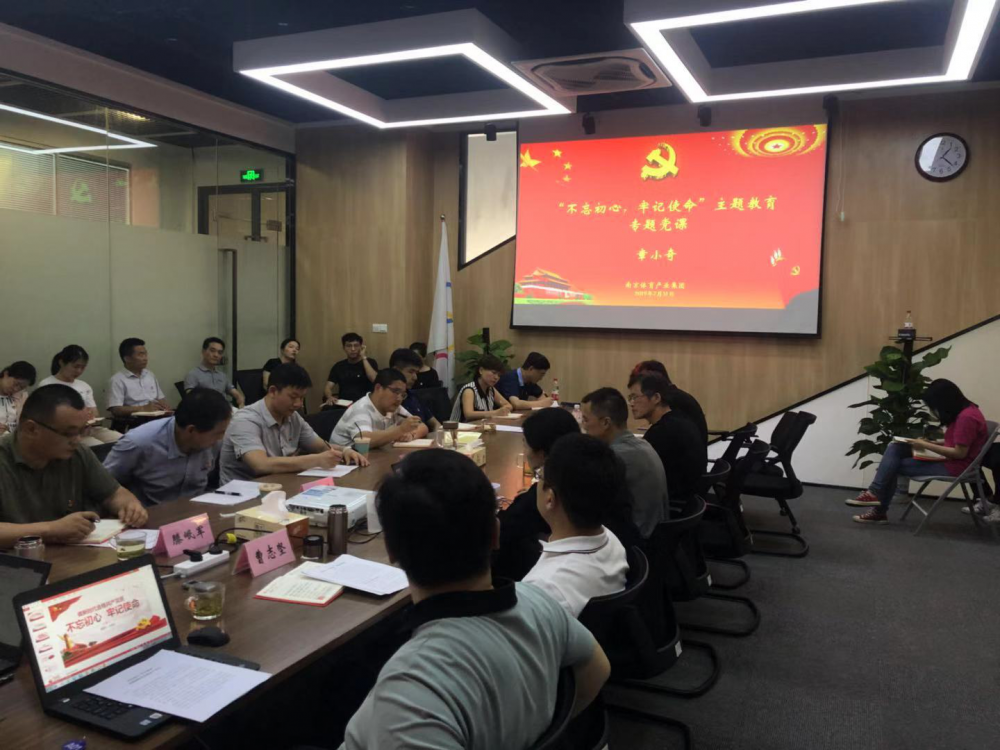 2019-08-1 7 0877月31日,按照省市委“不忘初心、牢记使命”主题教育统一部署安排,南京体育产业集团召开“不忘初心、牢记使命”主题教育专题党课学习会。集团党委书记、董事长章小奇以“锤炼党性筑党魂 开创集团新局面”为主题讲授专题党课。市委第十巡回指导组到会指导。集团总经理、党委副书记程向阳、副总经理王鹏、纪委书记滕岷军、副总经理曹志坚及各党支部全体党员、入党积极分子共40余人现场参加本次专题党课学习。同时,集团党委将本次学习采取视频直播形式,共计约50余人参加线上学习。