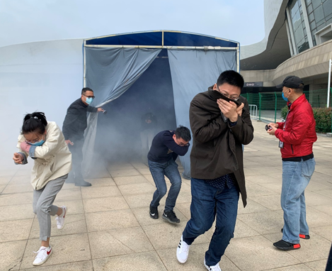 根据“预防为主、防消结合”的方针和消防安全工作的要求,场馆公司制定了完备的演练方案。本次演练共分为模拟火灾疏散、模拟火灾逃生、灭火器实操及抛接水带演练三部分进行。一、模拟火灾疏散:随着消防报警铃的响起,消控室第一时间查明情况并上报现场总指挥,灭火组、疏散组、动力保障组、警戒组、物资组、医疗组、通讯组等分别按照应急预案分工迅速开始行动,各组密切配合,最终“火情”得到控制。二、模拟火灾逃生:所有人员根据现场指挥和安排,利用低身逃生法快速穿过“模拟火灾”现场。该演练不仅锻炼了大家自救和带领群众逃生的能力,也让大家了解了低身逃生保护呼吸道自救的重要性。三、灭火器使用实操以及抛接水带演练:演练由安保部工作人员现场向大家讲解灭火器的分类及正确使用方法,所有人员在接受专业指导后亲手进行灭火器的灭火实操。