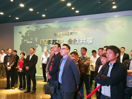 2017年10月13日下午,南京市江阴商会和江阴市总商会在南京市体育产业联合会副会长单位苏宁集团的安排下参观了苏宁集团位于徐庄软件园的总部。三方共同举办了以“互联网+时代企业的发展新模式”为主题的会长论坛活动。三方代表在参观了南京市体育产业联合会副会长单位苏宁集团后,企业家们围绕中心,就互联网+时代企业的发展问题进行了探讨。南京万德体育产业集团、三胞集团、万驰赛车场、南京边城体育用品股份有限公司、江苏由惠体育发展有限公司和南京维麟城文化传播有限公司作为联合会代表参加了此次会谈。